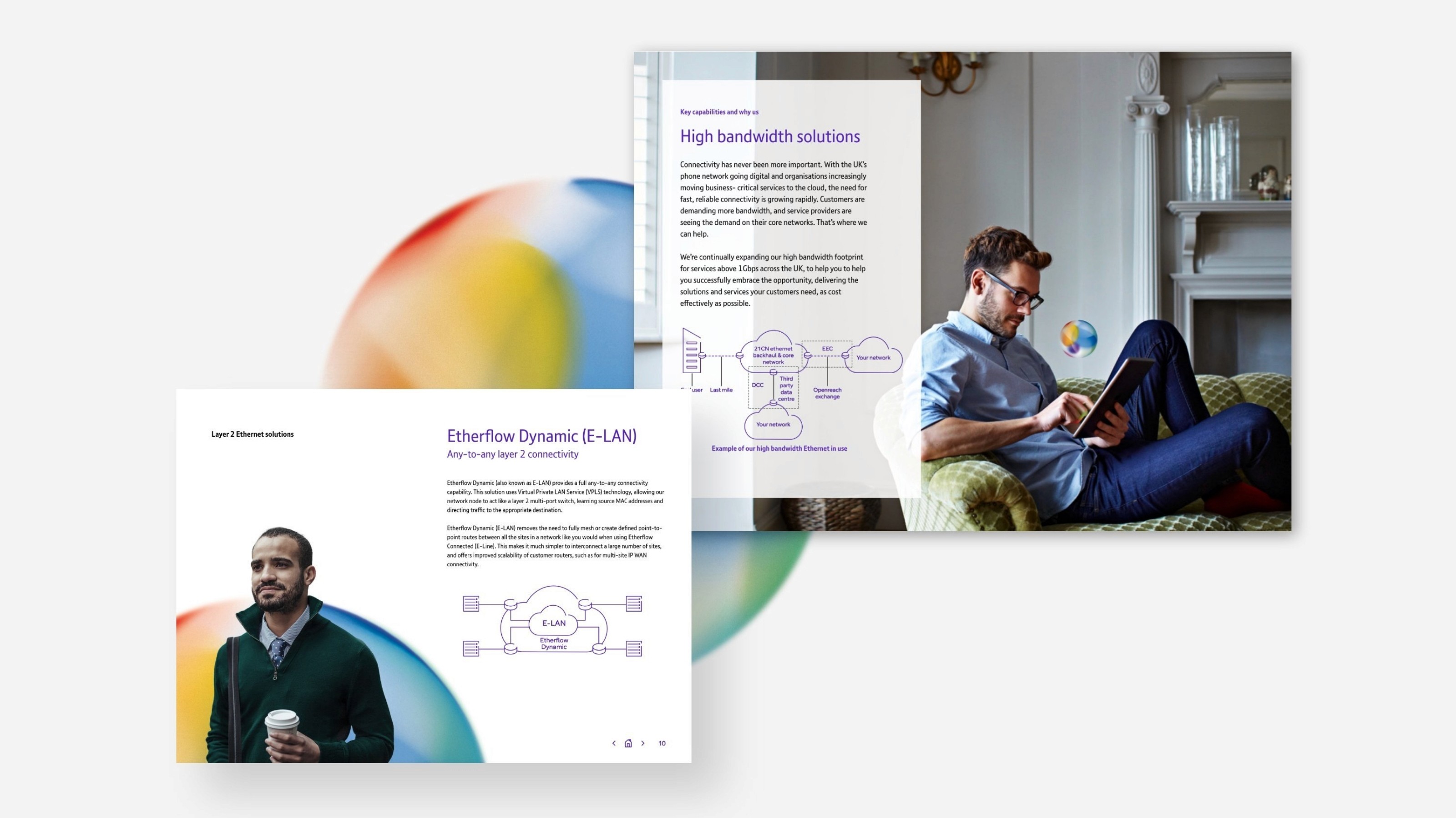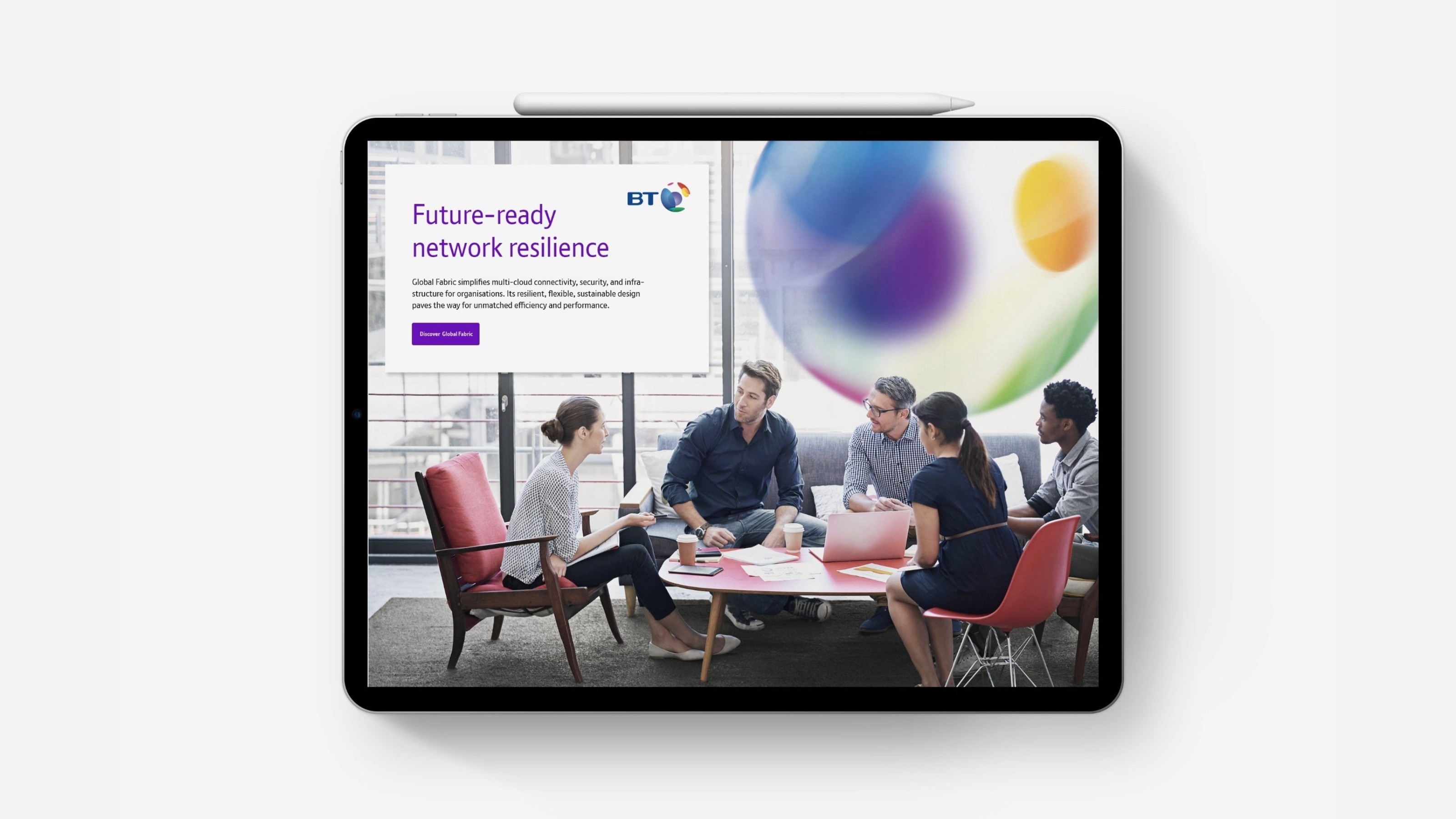 BT has transformed from a traditional telecoms provider into a global technology leader — one rooted in innovation as well as infrastructure. With the rollout of its nationwide broadband network complete, the company turned its focus to cloud computing, unified communications, and ultra‑fast connectivity across the world. This evolution called for a visual identity that balanced legacy with progress — a look that honoured BT’s heritage while expressing its growing technological ambition. The result was the “atom” concept: a dynamic reinterpretation of the BT logo infused with energy and light, paired with luminous, back‑lit photography that captured the brand’s premium, forward‑looking spirit.