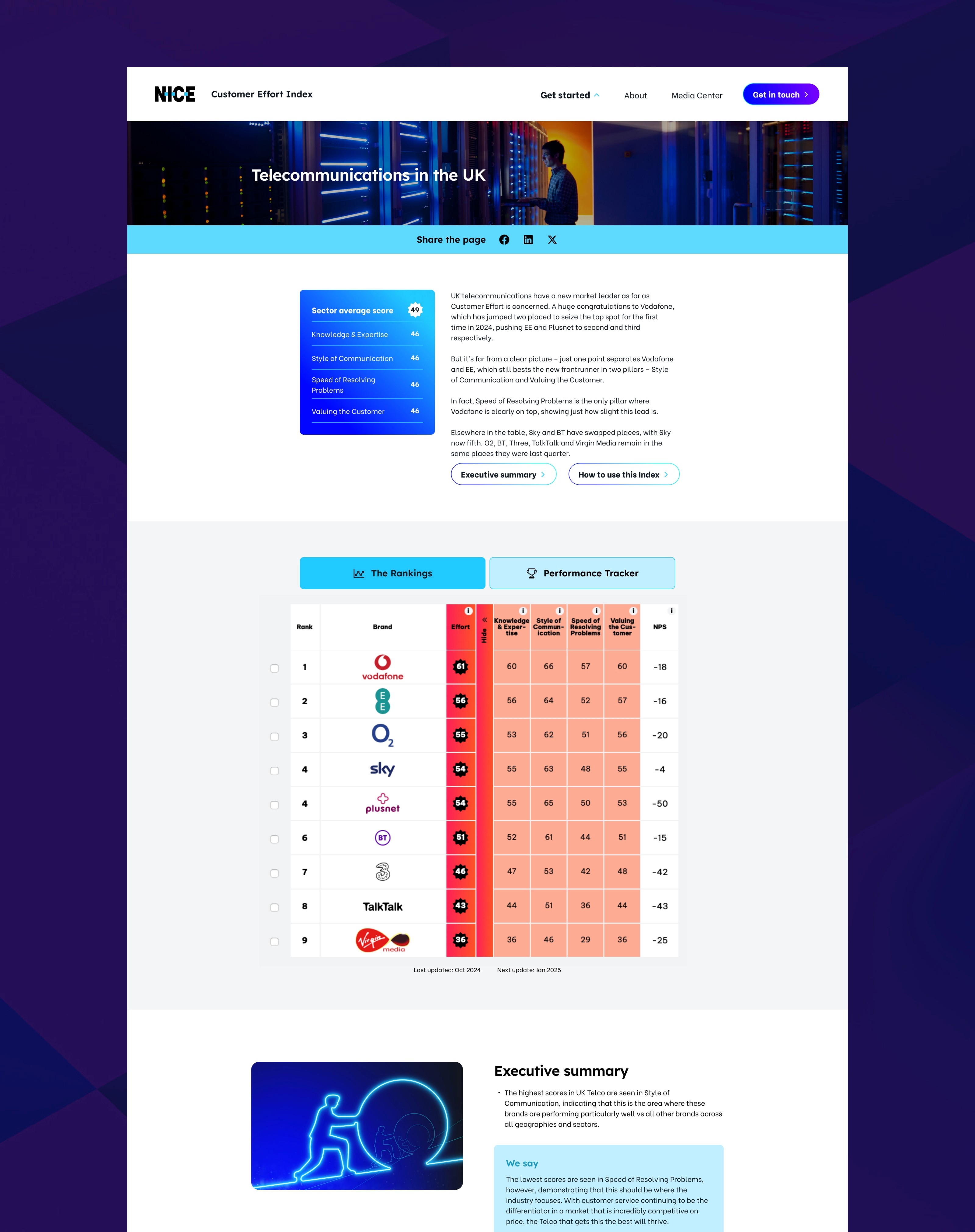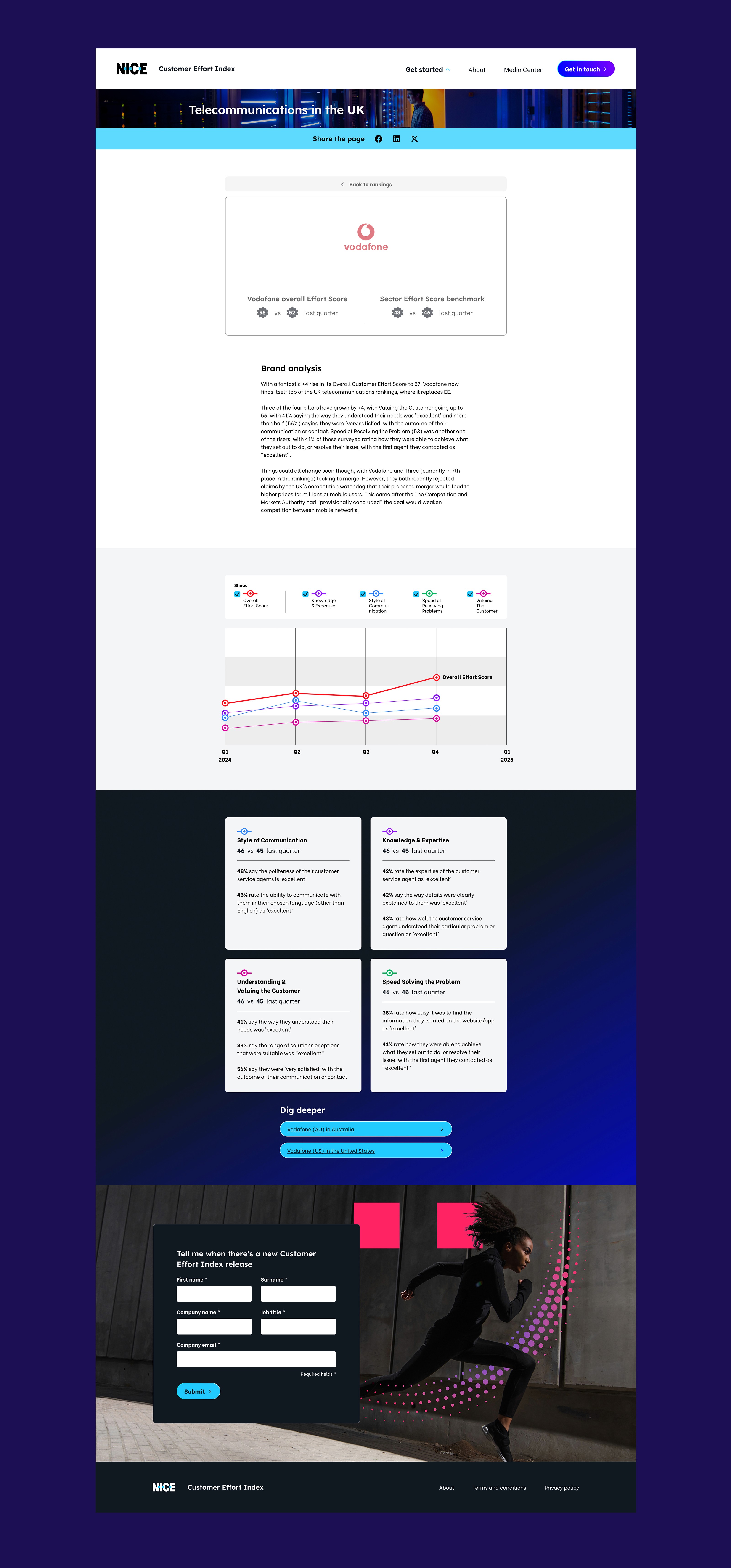 NiCE is an American artificial intelligence technology company specialising in customer relations management software. We created this index website for them ranking the ease with which customers interact with global corporates across three main sectors: telcom, finance, and retail. The index aggregates data based on interviews with 18,000 consumers across the UK, US and Australia each year.